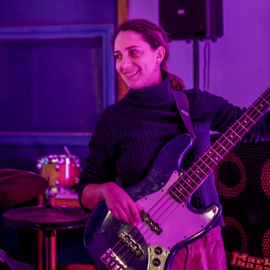 Marion Delmont a commencé le violoncelle à 7 ans, puis la guitare. Longtemps autodidacte, elle a poursuivi sa formation à Berlin avant d’intégrer le cursus DEM jazz du CRR de Tours. En 2023, elle créé avec Soa Ravaloson le sextet Ourses, projet presque exclusivement sexisé qui navigue entre jazz UK et hip-hop. Elle joue également dans le projet de Jasmine Lee Naïram et intervient dans divers projets collectifs (Little Pablo, La mégaloto). Elle intervient également pour le Girlcamp, stage de pratique musicale ouvert aux femmes et minorités de genre, porté par le Temps Machine.