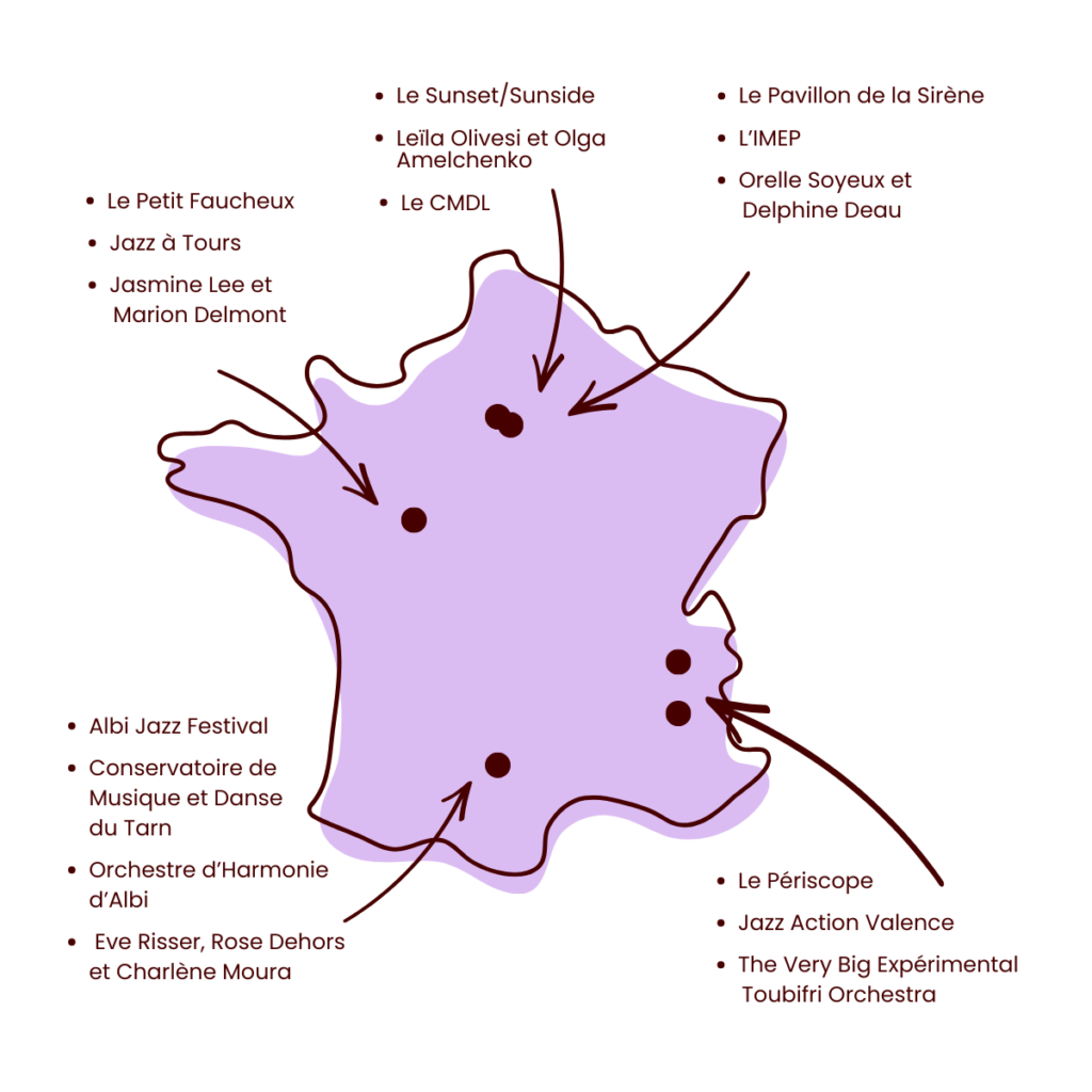 Membre du réseau FNEIJMA, Jazz Action Valence est un acteur structurant de la formation des musiciennes sur le territoire valentinois. À la croisée de la pratique amateure exigeante et de la formation professionnelle certifiante, JAV accompagne chaque année des musiciennes en phase de consolidation de leur projet artistique et professionnel. Dans le cadre du projet PASSAGES, Jazz Action Valence occupe un rôle central de co-construction pédagogique avec le Périscope.