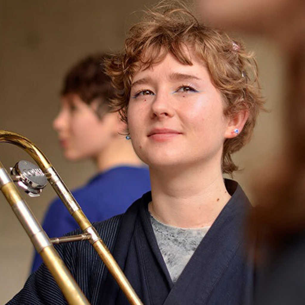 Tromboniste, sacqueboutiste et improvisatrice, Rose Dehors navigue entre jazz, musique ancienne et création contemporaine. Elle poursuit une double formation au CNSM de Paris (jazz) et au CNSM de Lyon (musiques anciennes). Elle mène ses projets Pliq et nit and dogs(Lauréat Jazz Migration) et joue dans de nombreux ensembles nationaux. Son quartet nit and dogs a été présenté à l’Albi Jazz Festival #7. Sa collaboration avec la SN ALBI-Tarn a débuté en 2025 et se poursuit dans le cadre de Young Girls in the Band.